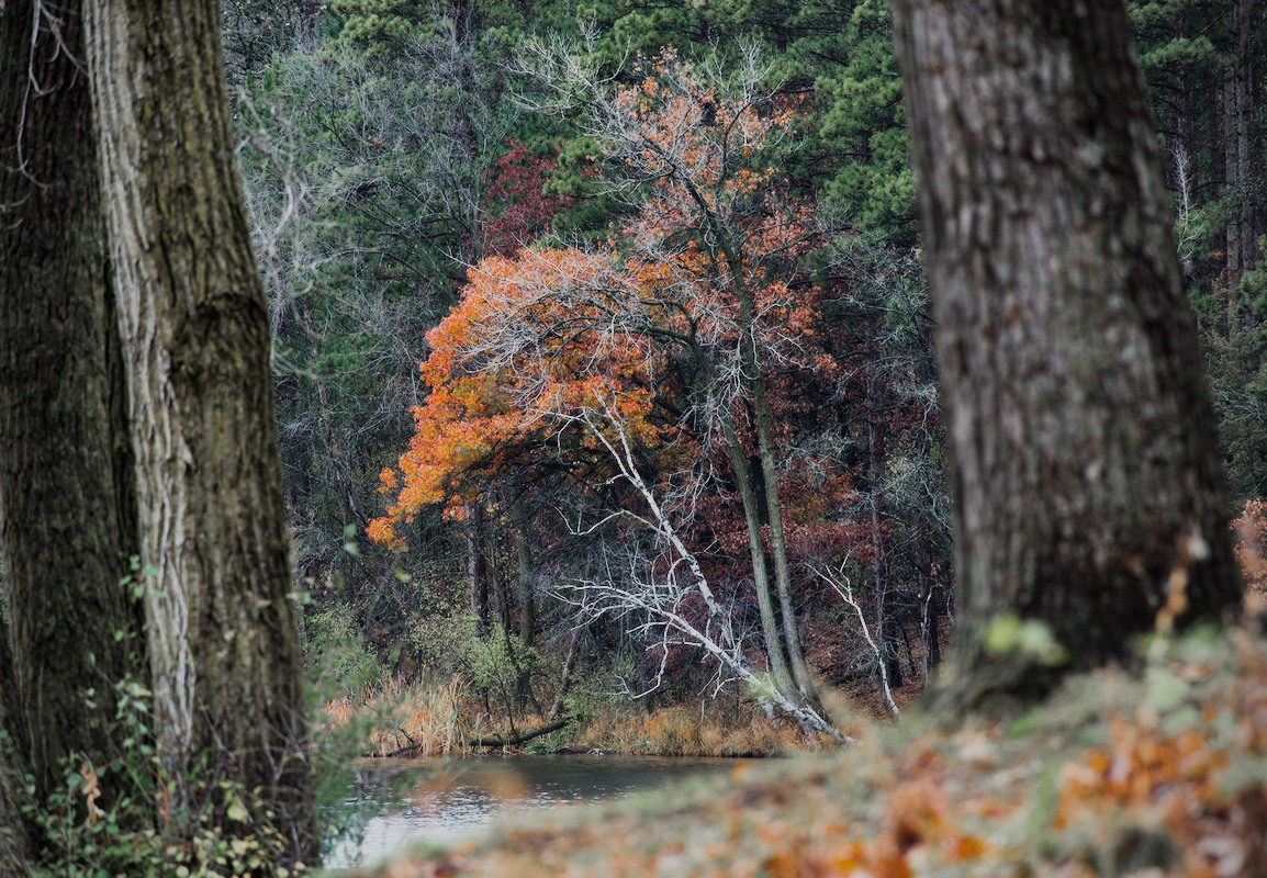 The image in this post was literally the last one I took on a recent outing to the forest. I was failing miserably and headed for the car. Off in the middle distance I saw this maple and birch intertwined together in the last display of color for a large portion of this woodland. I chose my 300mm lens so I could reach out and isolate the trees. With the light being really low due to fog and clouds, and wanting to focus the viewers attention to the trees, I chose a faster aperture than I may have for another landscape. This worked well with the longer lens and I was pretty happy with the results.